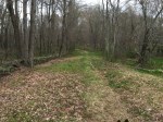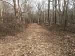 However, the pavement takes a sharp left and begins up Old Coop Road. The original road can still be followed by straight ahead. In certain spots, the old, broken pavement pokes through the grass, but it is mostly dirt. One side is a lined by the old rock wall that established the width of the road.