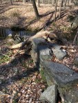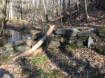 The dam for the mill can still be seen, but barely. It has degraded to a point where it’s difficult to spot when leaves are on the trees and even in the non-foliage months it can be mistaken for a pile of rocks. It stands no more than a foot or two high presently and only a few feet wide. It stops at the brook and there’s no sign of the stone ever crossing to the other side to harness the water.