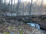 This large dam was not the first dam in the area. In fact, it wasn’t the first dam on this pond. An earlier dam can be seen 30 yards behind the dam, this one much smaller and made of stone. It appears to have been the water source of an ancient mill, although nearly all vestiges of it have completely vanished. When the larger dam was built, the resulting pond flooded the smaller dam and whatever may have remained of the mill.