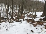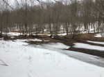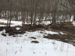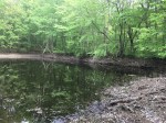 Just east of Diamond Lake is a mostly-dry pond created by a large dam, made of both stone and earth. It has the shape of a reservoir dam: Tall and wide but triangular as well, giving it more support than a tall and narrow stone dam such as Shoddy Mill or Smut Pond. There’s more reason to believe it was a reservoir as there’s no evidence of a mill in the area. Only a crude spillway can still be seen which likely prevented the pond from washing out the dam.