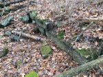 The ruins closest to the road are stone foundations that have mostly succumbed to nature. It’s long and narrow with plenty of scrap metal scattered in and around. On one end of the foundation is an open well, covered only by a rotting pallet and large rock. The well is still in great shape and deep enough where the bottom can’t be seen.