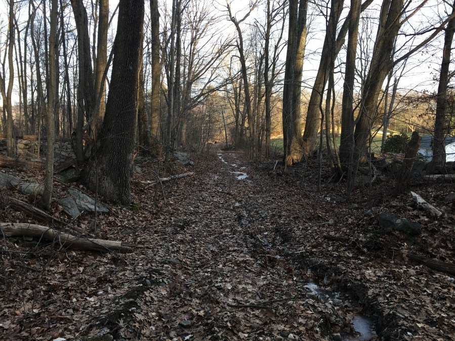 One end of the abandoned stretch, with the country club on the right.