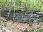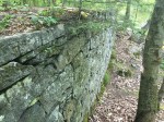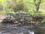 The footings are all that remain from the bridge, two stone walls that resemble retaining walls more than a bridge nowadays. The bridge sat right next to the old mill houses on the south shore of Roaring Brook. On the north side, the marker that honors the famous Eunice Cobb Stocking Gunpowder Mill from the Revolutionary War is located right next to the footing.