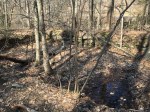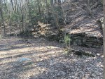 The homes were all located nearby to each other, sitting exactly 35 feet apart. They were all square with stone foundations. One of the foundations has an old well inside whereas the other two have a filled-in well sitting next to it. Also nearby to the forgotten homes are old foundations built partially into the wall, possible that of an old barn or shed.